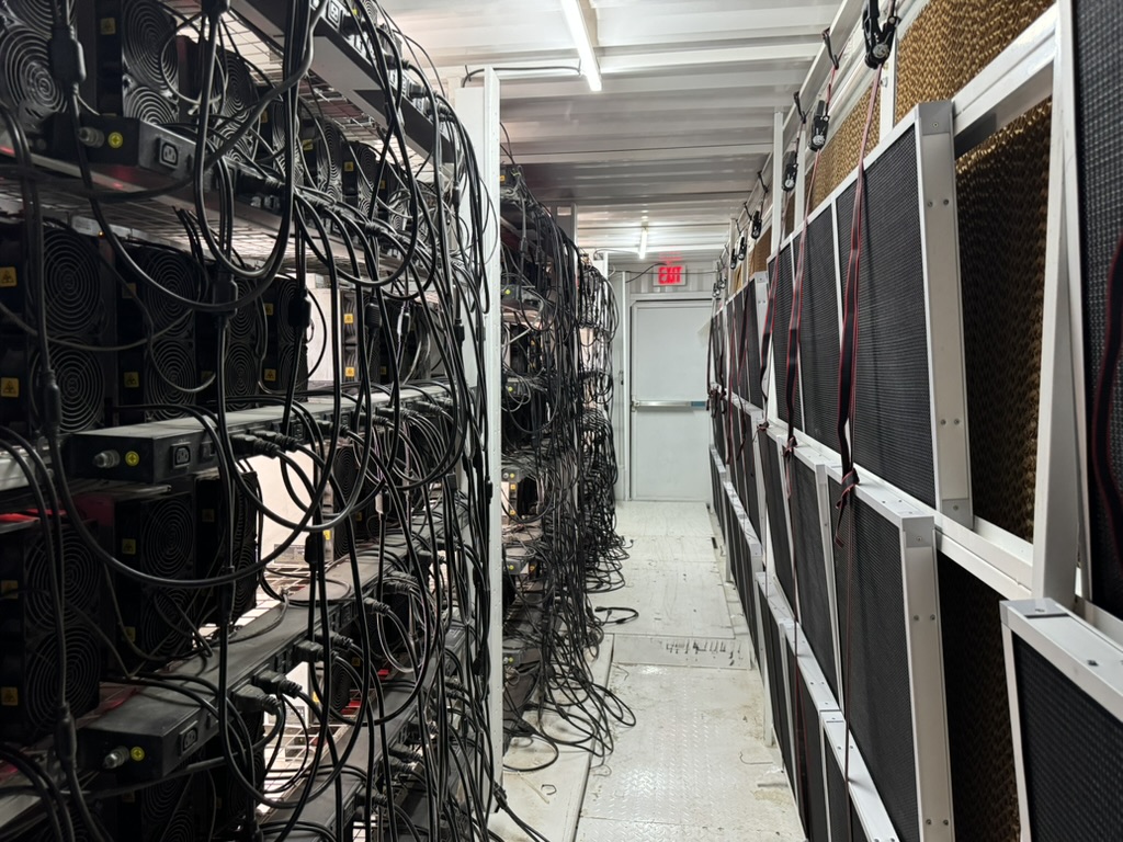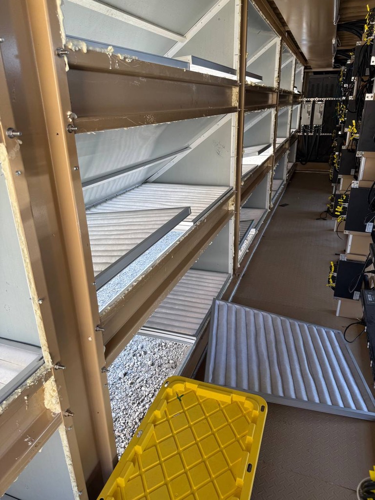 Air-cooled Bitcoin mining container and its interior: